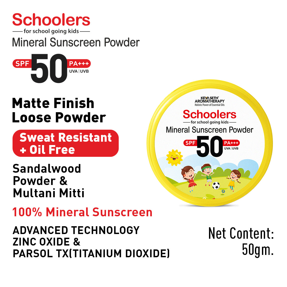 Schoolers Mineral Kids & Baby Sunscreen Powder SPF 50 PA+++, Sweat Resistant, Oil Free