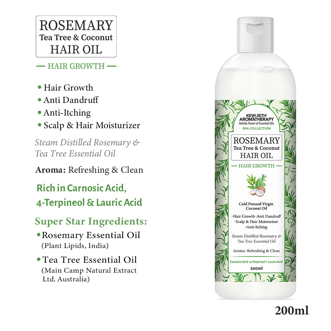 A potent blend of Rosemary & Tea Tree Oils, Biotin, Caffeine, Vitamin E, & Provitamin B5 boosts follicular circulation, combats harmful agent growth, blocks Anti-thinning agents & promotes growth.